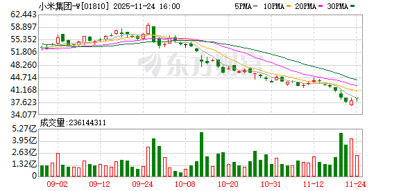 11月24日晚间,小米集团发布公告,本公司创始人、执行董事、董事长、首席执行官兼控股股东雷军于2025年11月24日通过由其全资拥有的Team Guide Limited购入合共260万股本公司B类普通股,平均价为每股约38.58港元,雷军持股比例增加至23.26%。