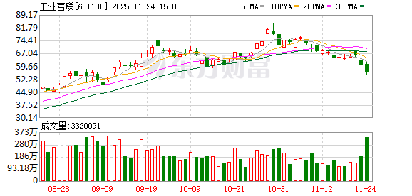 11月24日,万亿市值巨头工业富联股价遭遇重挫,盘中一度触及54.6元/股的跌停价。