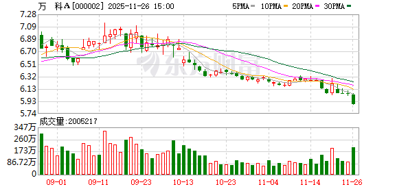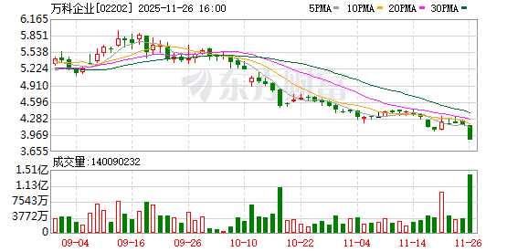 港股万科企业跌超4%,从9月12日到11月26日期间,股价从5.94港元一路下跌至4港元附近,创下2024年9月以来的新低。