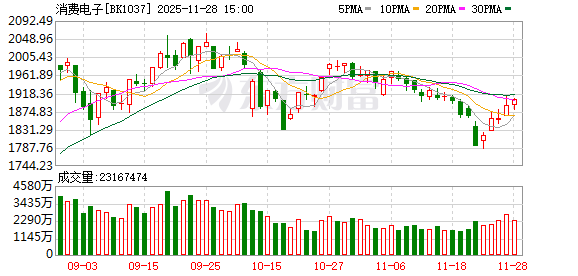 中国银河证券研报指出,消费电子板块经调整后已有性价比。数据显示,iphone17销量同比大幅增长,建议关注果链相关标的低位布局机会。可持续关注AI眼镜等新型消费电子品类投资机会。