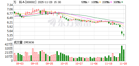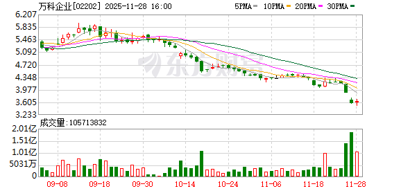 当日万科A股价一度下探至5.89元/股,创下2015年10月以来新低。而港股万科企业跌幅超过4%,自9月12日到11月26日期间,股价从5.94港元一路下跌至4港元附近,创下2024年9月以来新低。