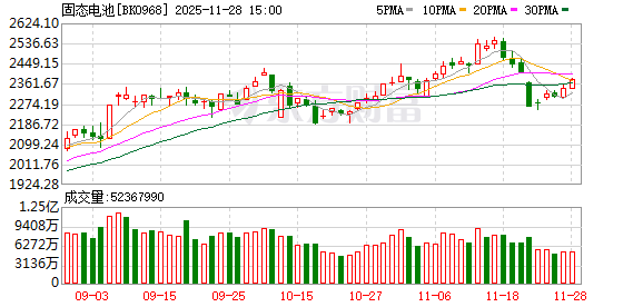 11月27日早盘固态电池板块表现强势,板块中联得装备、壹石通、道明光学纷纷涨停;华自科技、海科新源、金银河、鹏辉能源大涨超10%。