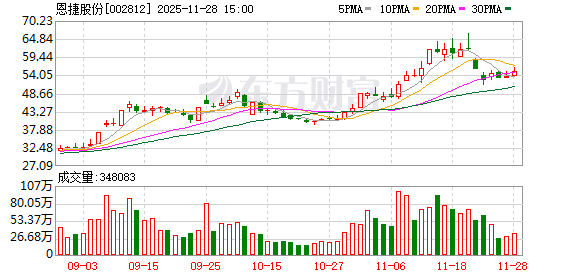 截至11月28日收盘,恩捷股份报55.35元/股,总市值543.66亿元。