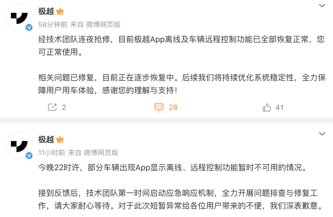 对此,极越汽车官方回应称,技术团队已第一时间启动应急响应机制,全力进行问题排查与修复。截至11月24日上午,官方表示相关问题已修复。