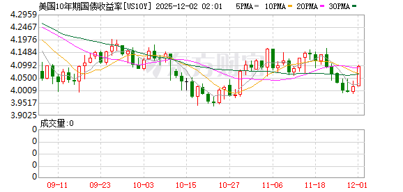 回顾11月,美债市场经历了一场显著的趋势切换:11月中上旬还在4.1%至4.2%区间横盘震荡的10年期美债收益率,进入下旬后快速下行,并一度跌破4%的关键关口。这一变动的背后,折射出全球资金对美国经济前景、美联储政策路径的重新定价。
