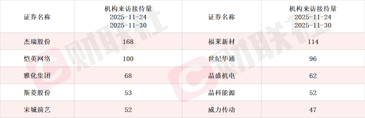 具体上市公司方面,据Choice数据统计,海峡股份和威胜信息接受调研次数最多,均达到3次。从机构来访接待量统计,杰瑞股份、福莱新材和恺英网络排名前三,机构来访接待量分别达168家、114家和100家。