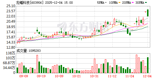 截至12月2日收盘,龙蟠科技股价报21.28元/股,涨幅达6.29%,总市值为136.3亿元。