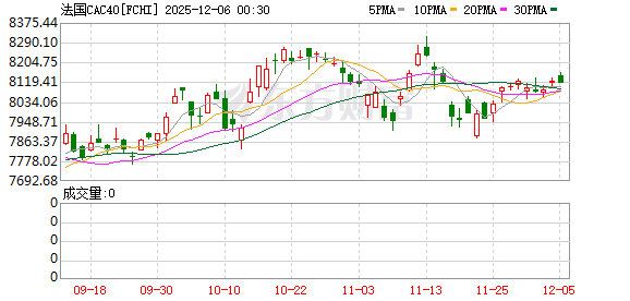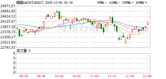 欧股市场:欧洲三大股指12月05日涨跌不一。英国伦敦股市《金融时报》100种股票平均价格指数报收于9667.01点,较前一交易日下跌43.86点,跌幅为0.45%;法国巴黎股市CAC40指数报收于8114.74点,较前一交易日下跌7.29点,跌幅为0.09%;德国法兰克福股市DAX指数报收于24028.14点,较前一交易日上涨146.11点,涨幅为0.61%。