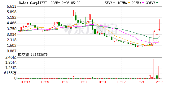 周三(12月3日)美股盘中,多只机器人概念股走强。截至收盘,Nauticus Robotics涨逾115%、iRobot涨逾70%。