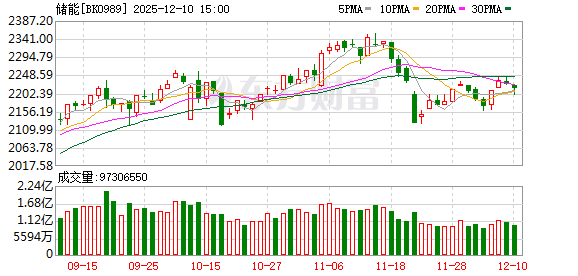 东方财富Choice数据显示,自今年11月以来,主力资金抢筹了一批储能概念股,净买额前20个股合计超66亿元。