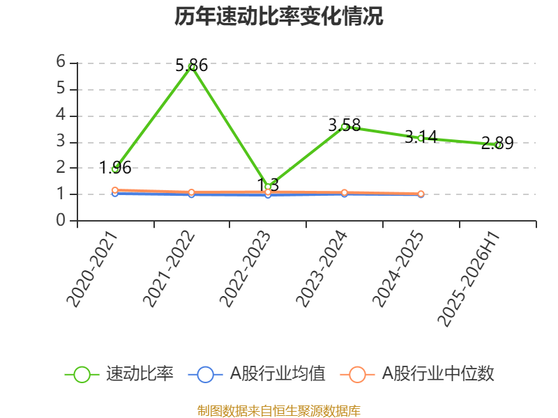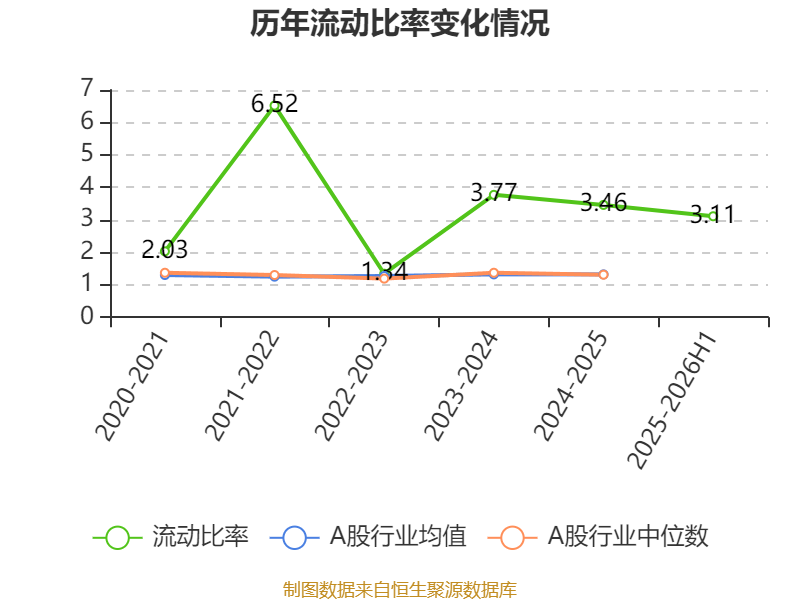 报告期内,公司流动比率为3.11,速动比率为2.89。