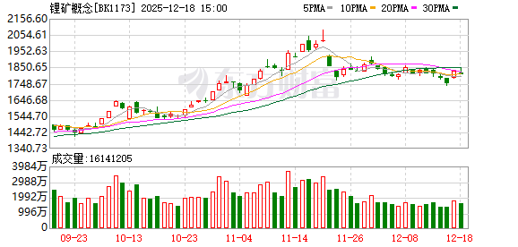 在产业链涨价的大背景下,上游锂矿概念股也就成了资本市场追逐的对象。截至12月17日早盘收盘,年内锂矿概念指数累计涨幅近60%,其中大中矿业、藏格矿业、盛新锂能、紫金矿业等股价纷纷翻倍。