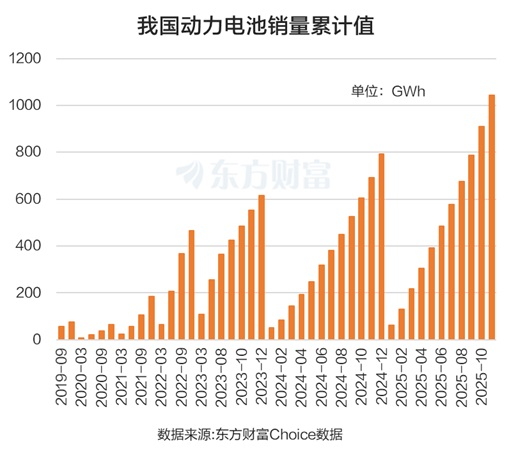 今年前11个月,我国动力电池累计销量为1044.3GWh,占总销量73.9%,同比增长50.3%;其他电池累计销量为368.2GWh,占总销量26.1%,同比增长68.9%。