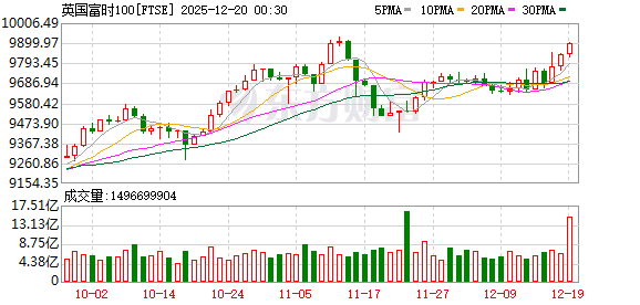 欧股市场:欧洲三大股指12月19日全线上涨。英国伦敦股市《金融时报》100种股票平均价格指数报收于9897.42点,较前一交易日上涨59.65点,涨幅为0.61%;法国巴黎股市CAC40指数报收于8151.38点,较前一交易日上涨0.74点,涨幅为0.01%;德国法兰克福股市DAX指数报收于24288.4点,较前一交易日上涨88.9点,涨幅为0.37%。