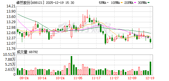 2025年前三季度,卓然股份实现营业收入为15.6亿元,同比下降18.8%;归母净利润为5956万元,同比上升74.5%;扣非归母净利润亏损3298万元,同比下降210.3%;经营现金流净额为-3.05亿元,同比下降215.0%;EPS(全面摊薄)为0.2549元。