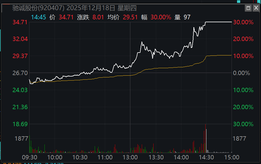 12月18日,北交所发布对李某浩采取自律监管措施的决定。经查明,2025年12月18日,李某浩名下证券账户及与其涉嫌关联的账户,在交易北京证券交易所上市股票“驰诚股份”(证券代码:920407)的过程中,存在拉抬打压股价的异常交易行为。