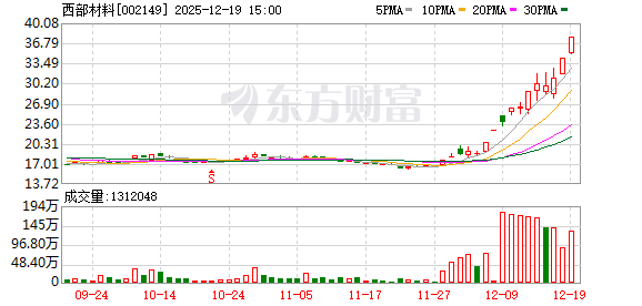 作为国内盛传的SpaceX供应链企业,西部材料(002149.SZ)股价在近期走出强势行情,近一周内从28.93元攀升,截至12月19日报收37.72元/股,市值达184.2亿元,创历史新高,股价年内大涨116%。