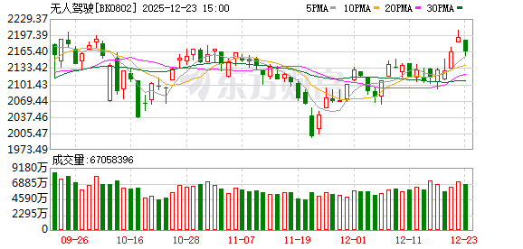 无人驾驶板块指数年内涨约四成,其中204股实现股价上涨,占比近八成,更有29股股价涨超1倍。品茗科技涨幅居首,公司股价年内涨超4倍;中际旭创、腾景科技分列二三位,年内涨幅分别为365.21%和310.73%;赛微电子、豪恩汽电、东田微等7股的区间涨幅均在两倍以上。