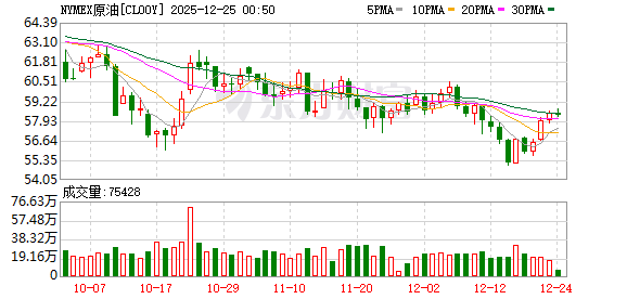 商品市场:国际油价12月22日上涨。截至当天收盘,纽约商品交易所WTI原油期货当月连续合约上涨1.43美元,收于每桶57.95美元,涨幅为2.53%。国际金银续创新高。COMEX黄金期货涨2.13%,报4480.6美元/盎司;COMEX白银期货涨2.37%,报69.09美元/盎司。