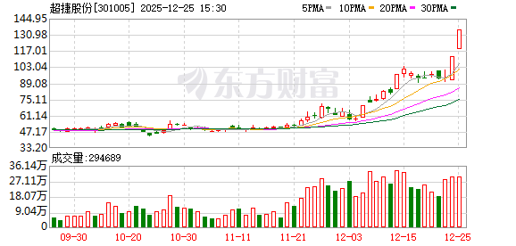 二级市场方面,商业航天板块今日单边上行,超捷股份收获20cm涨停,股价创历史新高,本月涨幅高达69.39%。