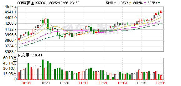 今年年初,黄金期货价格约为每盎司2,640美元。本周一,金价一度突破每盎司4,500美元的历史新高。