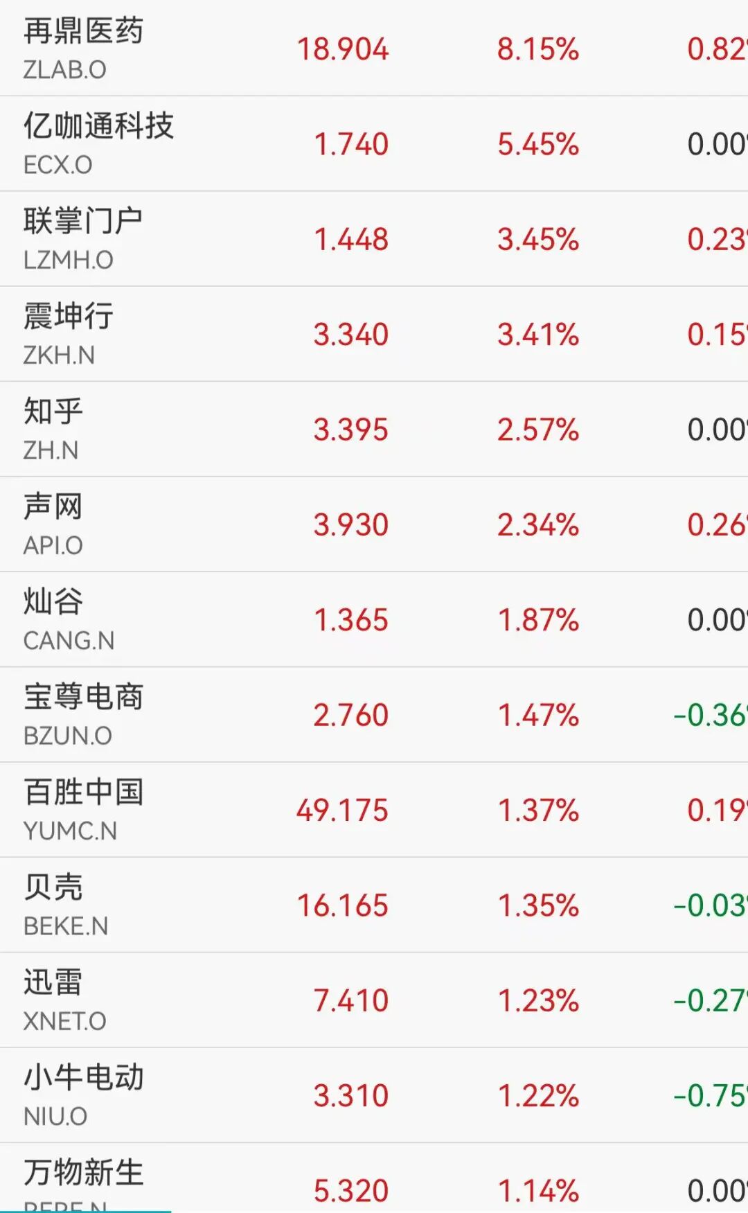 纳斯达克中国金龙指数盘初上演反弹行情,开盘跌0.35%后转涨,截至发稿涨幅0.11%,再鼎药业涨超8%,知乎涨超2%,小牛电动、迅雷、贝壳涨超1%。