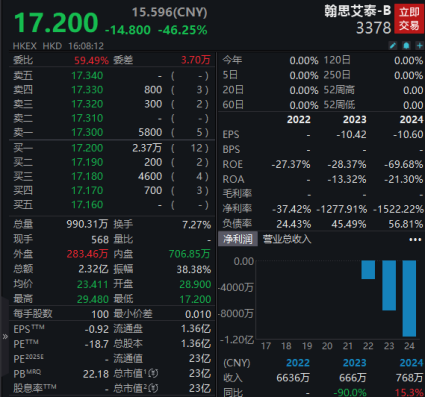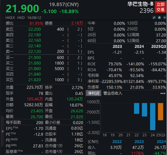 在本次上市的3家公司中,作为生物科技的公司翰思艾泰可谓表现最差,上市首日股价就接近腰斩。而同类型公司华芢生物同样遭遇“滑铁卢”,上市首日股价大跌29.32%。23日,华芢生物股价再度大跌18.89%。