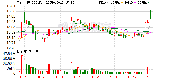 二级市场方面,昌红科技股价今日上涨2.32%,本月涨幅为7.23%。