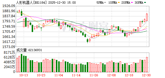人形机器人板块12月30日表现强势,步科股份、华菱线缆、新时达、浙江荣泰、北特科技、天奇股份、五洲新春纷纷涨停;昊志机电、丰光精密、恒工精密、安培龙、伟创电气、力星股份大涨超10%。此外,同步磁阻电机、机器人执行器、减速器、PEEK材料等相关概念,也在概念涨幅榜上靠前。