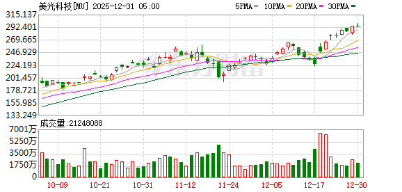 大型科技股多数下跌,特斯拉跌超3%,英伟达跌超1%,微软、奈飞、亚马逊、Meta小幅下跌;英特尔涨超1%,苹果、谷歌小幅上涨。美光科技涨超3%,股价创历史新高。