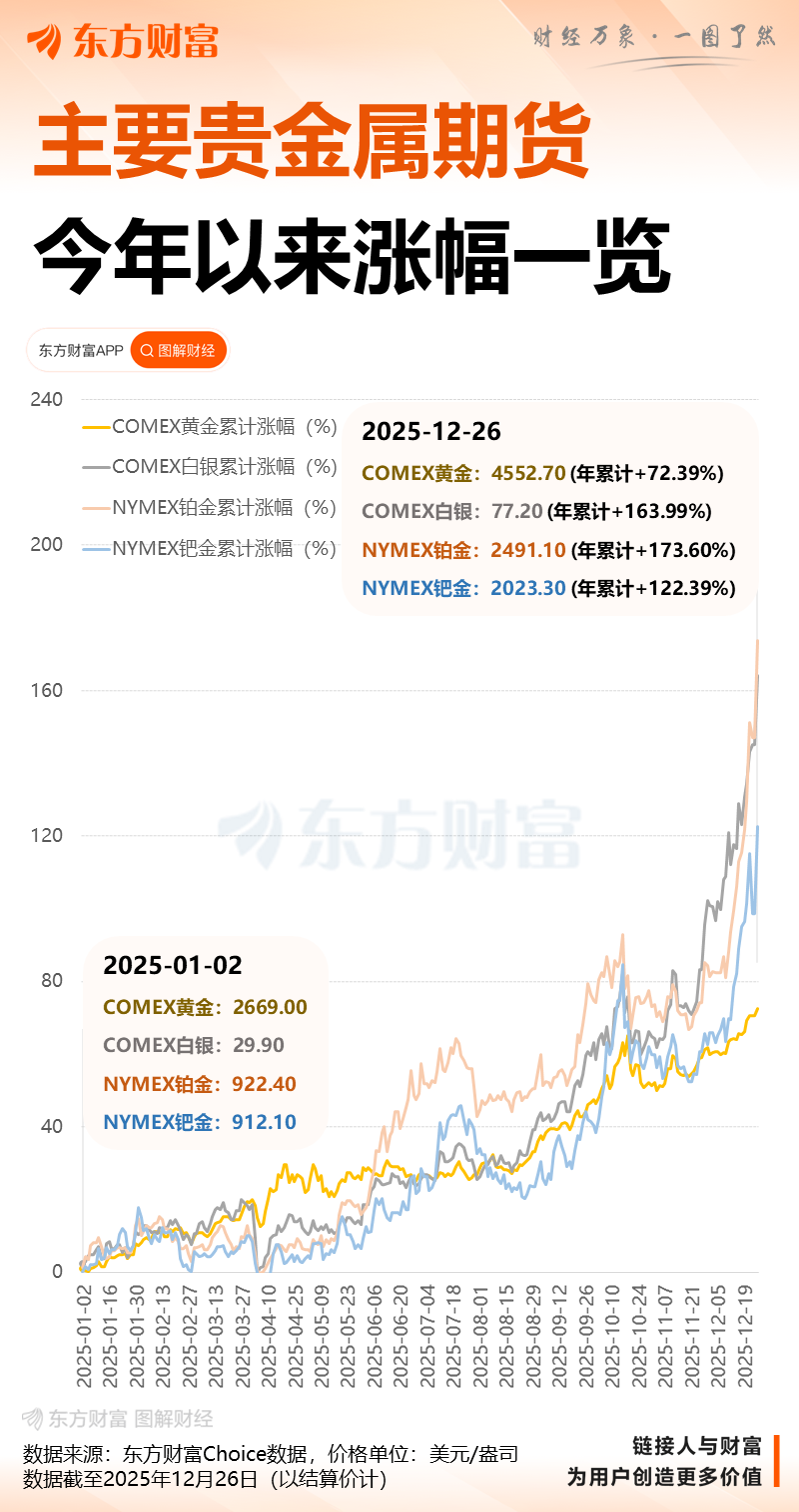 作为对比,12 月初时白银价格仅为56美元/盎司,而2025年初时则仅为29美元/盎司。今年以来,银价涨幅高达约180%。