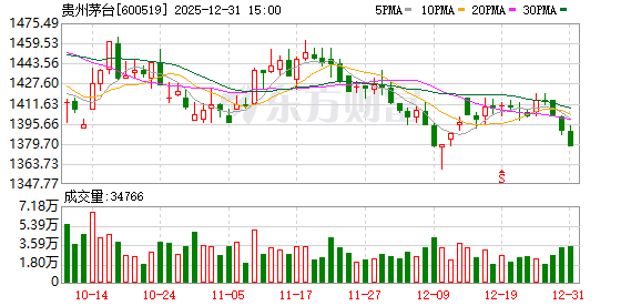 资本市场上,贵州茅台的股价已连续4个交易日下跌;在2025年12月18日至31日的10个交易日中,有8个交易日均收跌。