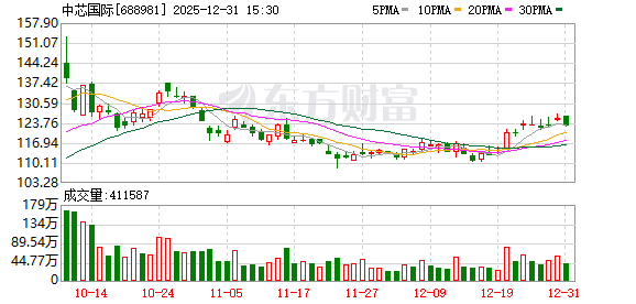 A股方面,截至2025年12月31日,中芯国际A股报122.83元/股,当日跌幅为1.96%。