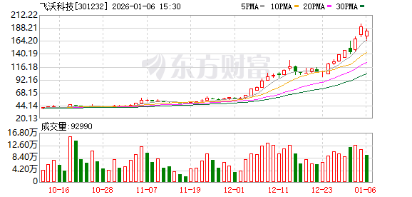 东方财富数据显示,2025年12月3日至2026年1月5日收盘,飞沃科技在22个交易日内累计大涨225.96%,期间总计成交额达243.7亿元,累计换手率达483.06%,相比之下,同期板块涨幅仅9.32%,大盘涨幅为5.91%。