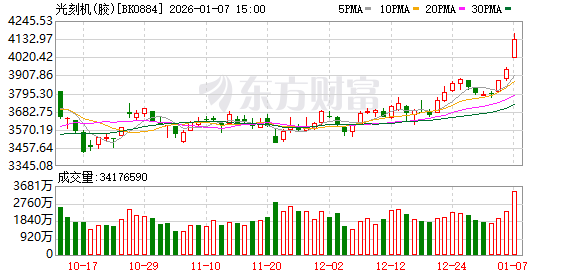 周三(1月7日)光刻机概念领涨,引爆芯片产业链。个股方面,光刻机概念股佳先股份大涨近26%,高盟新材、南大光电、芯源微等多股20CM涨停,普利特、国风新材等多股涨停。