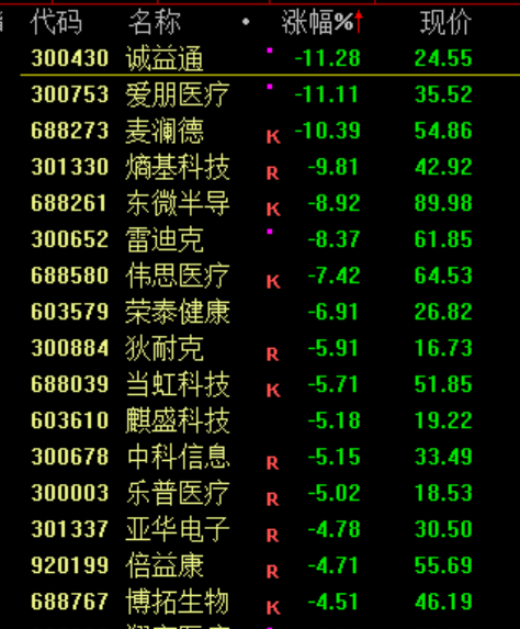 下跌方面,脑机接口股概念下挫,诚益通、爱朋医疗等跌超10%。