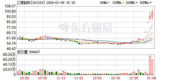 “20%两连板”三博脑科发布公告称,公司股票于2026年1月5日、1月6日连续两个交易日内收盘价格涨幅偏离值累计超过30%,属于股票交易异常波动情形。公司是以神经专科为特色的医疗服务集团,下属院区主要为患者提供以高精尖神经外科为主的综合医疗服务。公司目前不涉及脑机接口产品的研发、生产及销售,神经调控技术带来的收入占公司营业收入比重很小,对公司业绩基本没有影响,敬请注意投资风险。