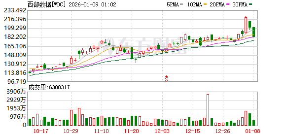 美股存储概念股集体大涨创新高,美光科技涨超10%,闪迪涨超27%,西部数据涨超16%,希捷科技涨14%。
