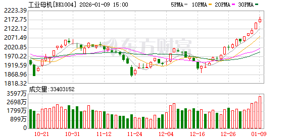 1月8日早盘,工业母机概念股持续走高,华东数控、国机重装、南兴股份强势封板,维宏股份一度冲击20cm涨停,东土科技、恒进感应、华中数控、德恩精工等多股跟涨。