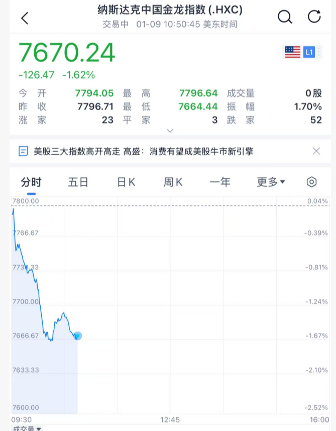 1月9日晚间,美股三大指数盘中拉升,道指涨超100点,纳指涨约0.5%,标普500指数涨约0.4%。