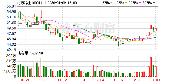 同日,北方稀土发布公告称,根据稀土精矿定价方法及2025年第四季度稀土氧化物价格,经测算并经公司2026年第1次总经理办公会审议通过,2026年第一季度稀土精矿交易价格调整为不含税26834元/吨(干量,REO=50%),REO每增减1%、不含税价格增减536.68元/吨。
