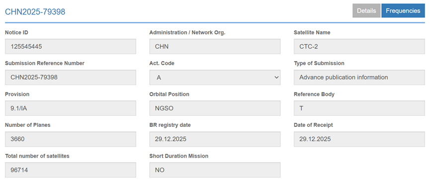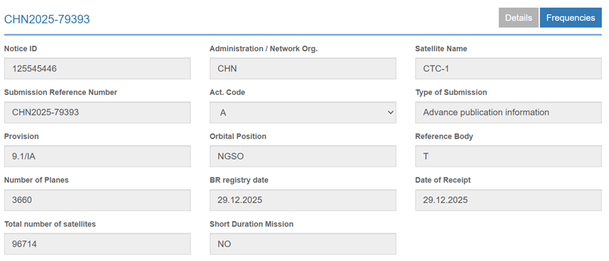 其中大部分来自一个新机构:无线电创新院(全称“无线电频谱开发利用和技术创新研究院”)。它申报的CTC-1、CTC-2两个星座,各96,714颗,两者合计超过19万颗。