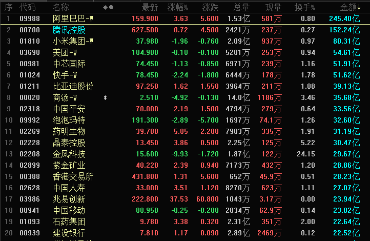 盘面上,权重科技股涨跌不一,阿里巴巴涨幅收窄至3.6%盘中曾大涨6.3%,快手跌2.2%,小米、百度跌近2%;美联储风波与地缘政治引爆避险交易,黄金白银双双狂飙刷新高,黄金股全天强势引领有色金属股上涨;生物医药股集体活跃,龙头药明康德盈喜后股价大涨超8%;保险股、半导体股、汽车股、煤炭股、银行股、石油股多数权重支撑恒指上涨。