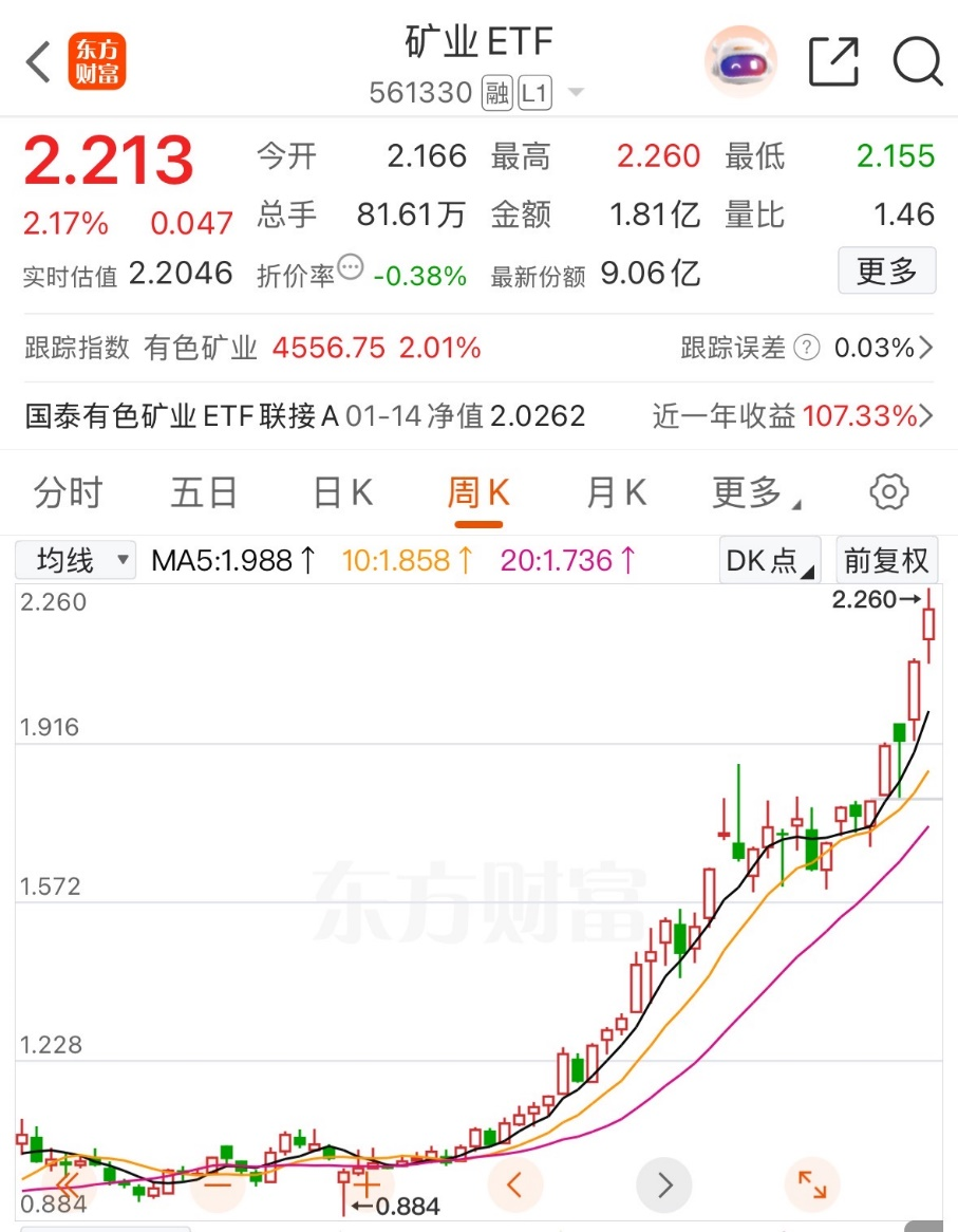 矿业ETF(561330)跟踪中证有色金属矿业主题指数,覆盖铜、黄金、稀土等上游资源龙头39只个股,龙头集中度高。2025年涨幅居有色类ETF首位,近期资金持续净流入,兼具资源与周期属性。