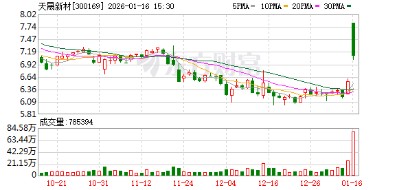 因“易主”方案出炉,天晟新材股票将于1月16日复牌。公司股东吕泽伟、孙剑与融晟鑫泰签署《股份转让协议》,约定融晟鑫泰以协议转让的方式合计受让公司2049万股股份。同时,公司拟向融晟致瑞发行5000万股股票,融晟致瑞拟以现金方式全额认购。协议转让完成后,融晟鑫泰持有上市公司股份占上市公司股份总数的6.29%。