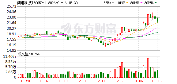 截至1月15日收盘,朗进科技报22.63元/股,公司总市值20.79亿元。