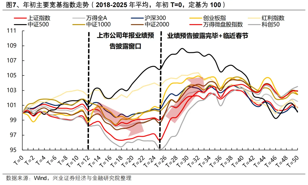 参考历史经验,从年初行情节奏上来看,年报业绩预告披露窗口(1月下半月)指数本身面临一定的调整压力,尤其是对缺乏基本面支撑的小微盘影响较大。
