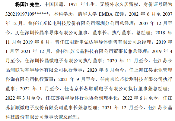 此前,长晶科技披露的实控人情况显示,其实控人杨国江,曾任长电科技深圳分公司总经理、江阴新申弘达半导体销售有限公司总经理等职务。