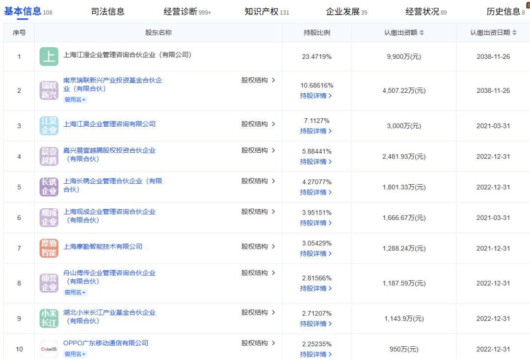 OPPO广东移动通信有限公司持股2.25235%。