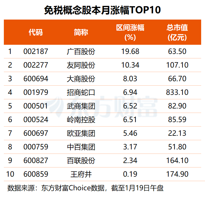东方财富概念板块显示,目前A股市场共21股涉及免税概念,合计总市值近9000亿元,今年以来,免税概念走势分化,广百股份、友阿股份累计涨幅分别为约20%和10%,大商股份涨约8%位居第三;海峡股份、海南机场、海南发展近期均明显回调,其中海南发展月内跌逾22%。